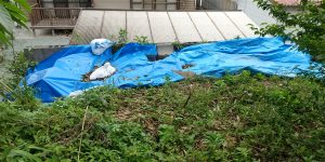 家主様が心配されてシートで養生をされていました。