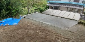 日置市リフォームで裏庭の問題を解決しました。雨が降ると裏庭の土砂が隣地へ流出するので何とかしてほしい。と 相談を受け現調しました。