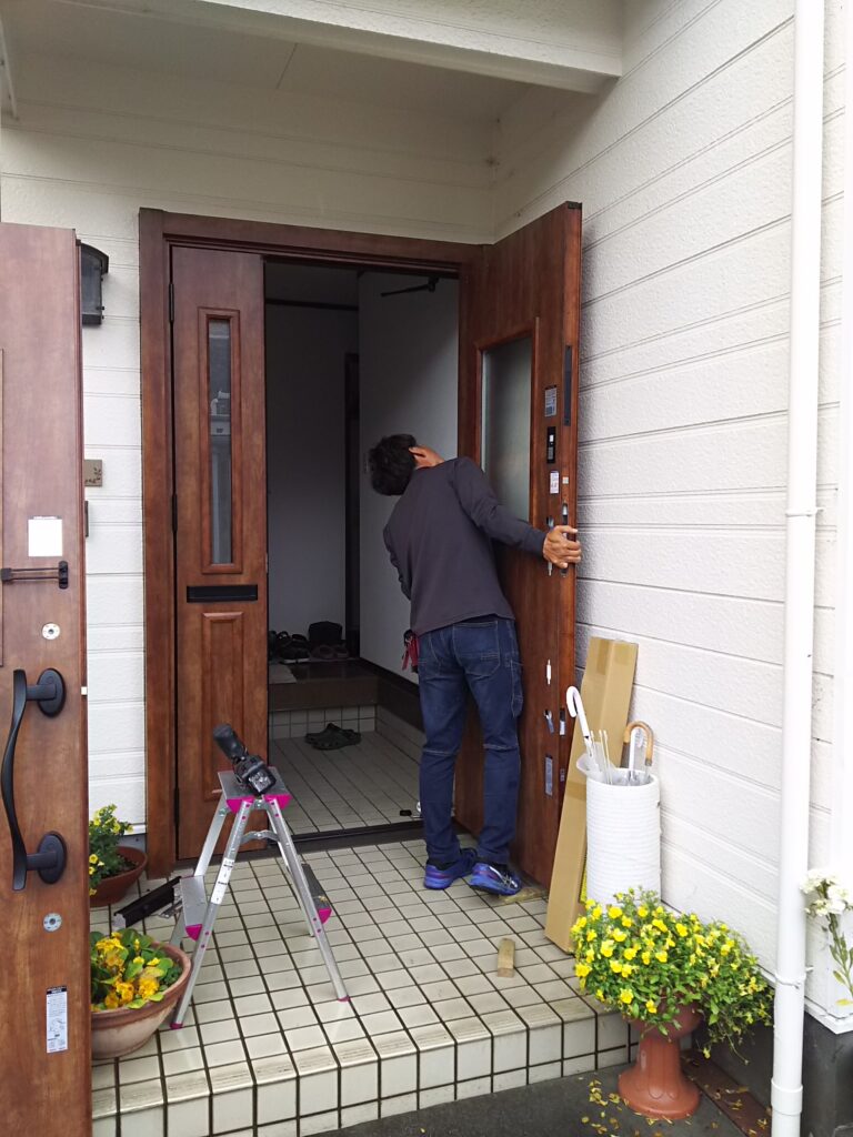 玄関ドアのリフォーム 鹿児島市の I様邸の玄関ドアを「1dayリフォーム」させて頂きました。濃いめの色で 締まった感が出ました。今回も、ありがとうございました。 工事前 建込み 完成 タッチキーでタッチ施錠・開錠です。 日置市 リフォーム 裏庭をリフォームしました。 ブログ一覧に戻る 寒い浴室をユニットバスへ